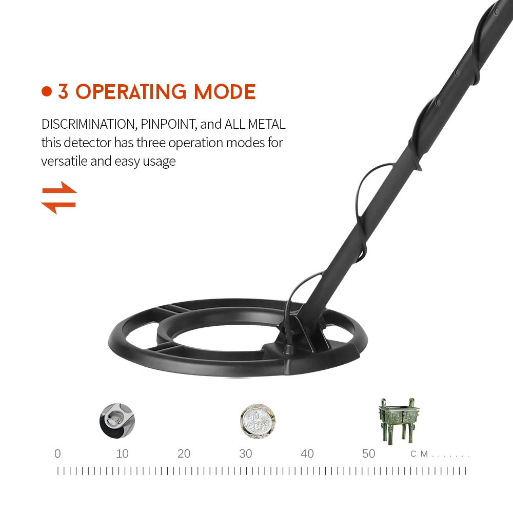 3 режима работы: дискриминированный, точечный и металлический, этот детектор имеет три режима работы для универсального и легкого использования.