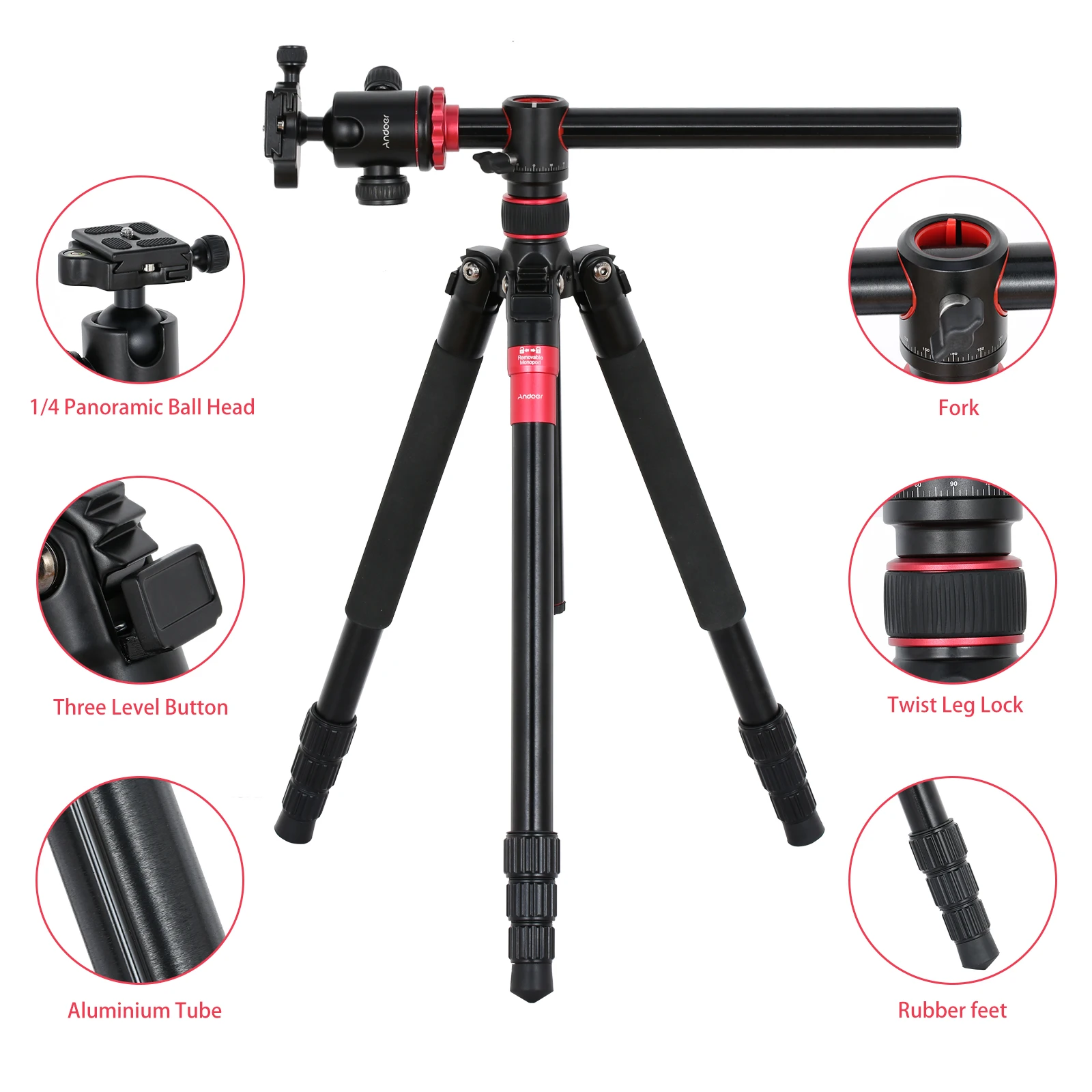 [Панорамная шаровая Головка с поворотом на 360 градусов и горизонтальная Центральная колонна]Легко и плавно вращается, с 1/4 дюймовым винтом, совместим с камерой, видеокамерой и многими другими, центральная колонка может быть перевернута, идеально подходит для съемки под низким углом, панорамной фотографии, видеосъемки, фотография пейзажа и т. Д.
