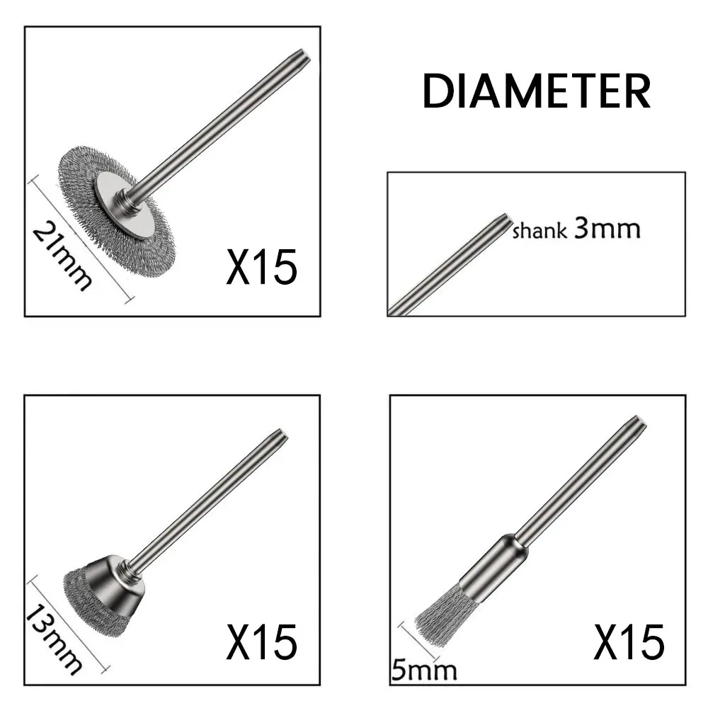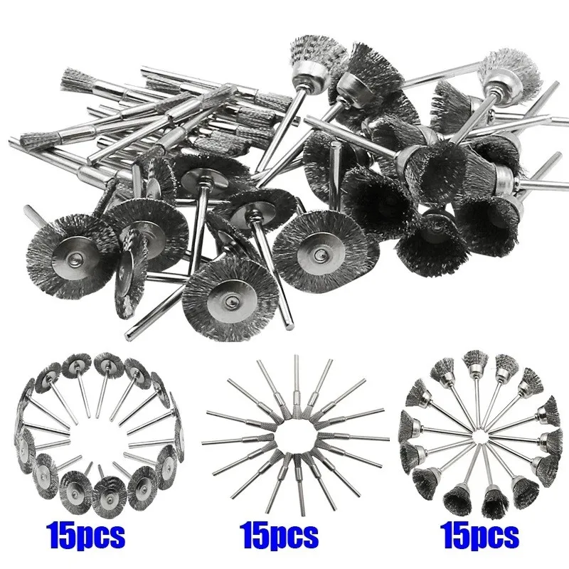 45pcs Steel Wire Brush Wheel(3 Types, 15pcs of each types)