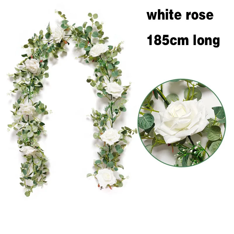 Искусственные эвкалиптовые гирлянды с белой розой пион лоза эвкалипта пряди для свадьбы День рождения вечеринка украшение для дома и сада
