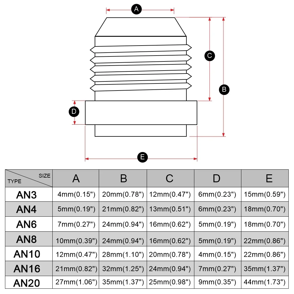 Размер: AN3/AN4/AN6/AN8/AN10/AN12/AN16/AN20