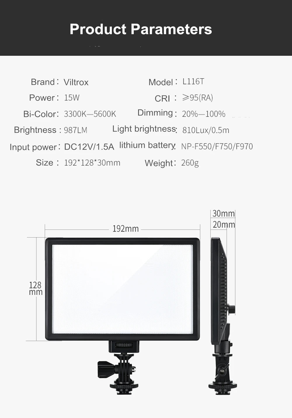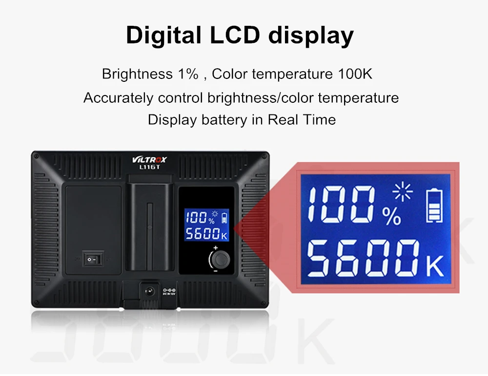 VILTROX L116T светодиодный светильник принимает новейший светодиодный дизайн сот. Он обладает высокой яркостью, естественным и мягким освещением, стабильной цветовой температурой. Подходит для портретов/детей/свадьбы и т. Д.
