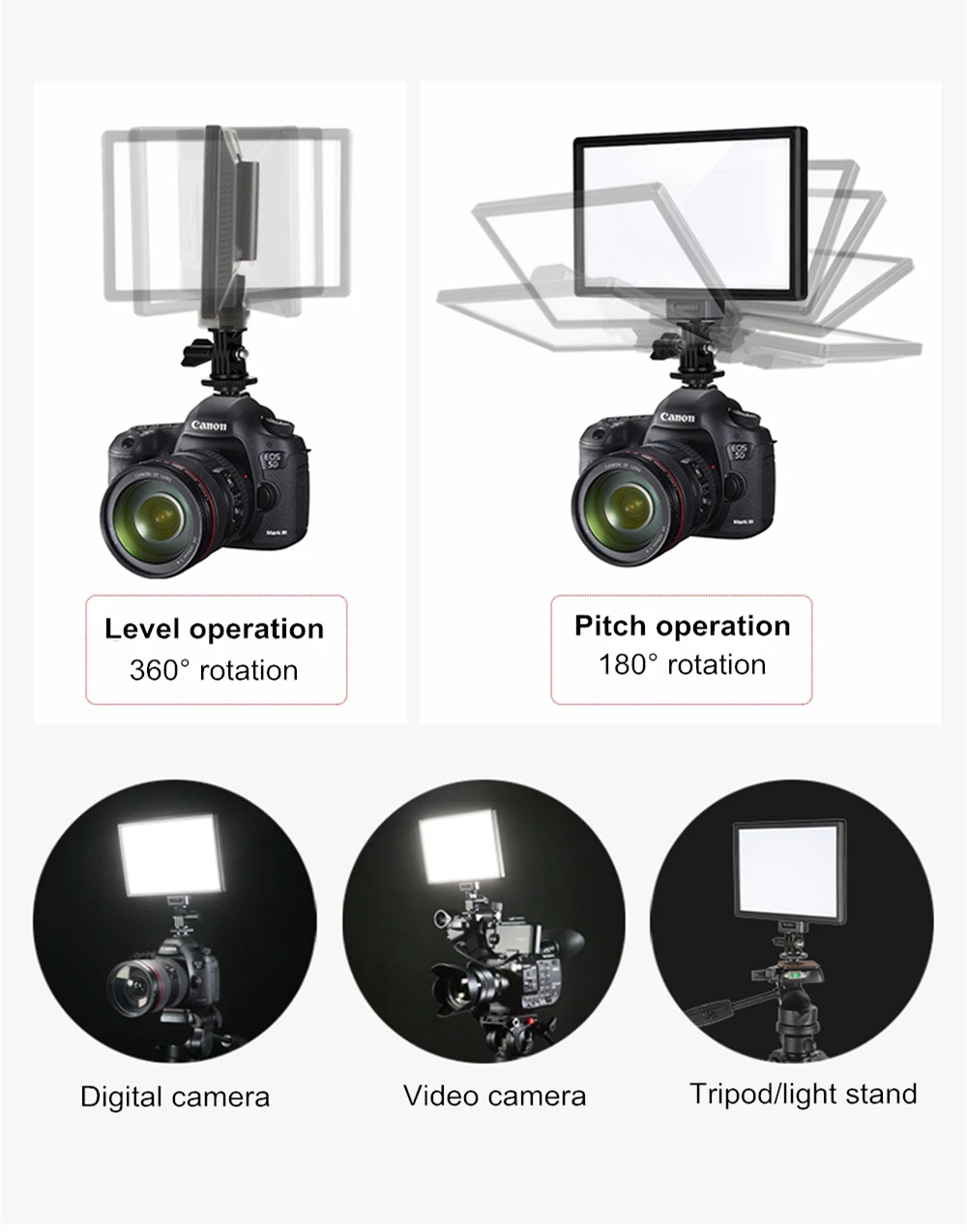 Его можно установить на DSLR , DV видеокамеру и штатив.