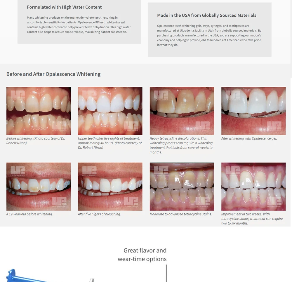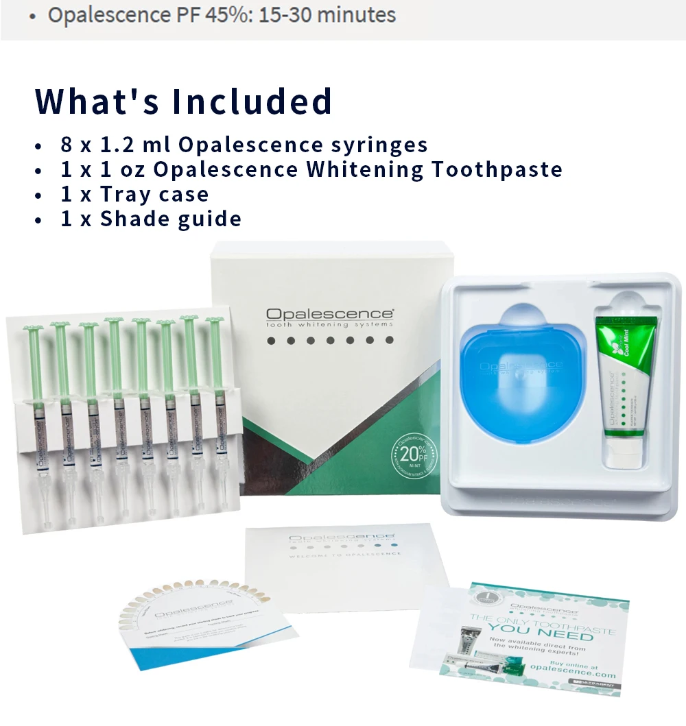 F ваши клиенты ищут лучший опыт и результаты отбеливания зубов, Opalescence PF отбеливание зубов может доставить. Он используется с заказными отбеливающими лотками для зубов, чтобы обеспечить индивидуальный подход, который хотят больные, в то время как мощный отбеливающий гель для зубов дает им результаты, которые они заслуживают. С более чем 30-летним опытом работы, более чем 50 Отбеливание зубов наград, и более 100 миллионов улыбки ярче, опалесценция отбеливание зубов является #1 Профессиональный Отбеливание зубов название бренда на планете по какой-то причине.