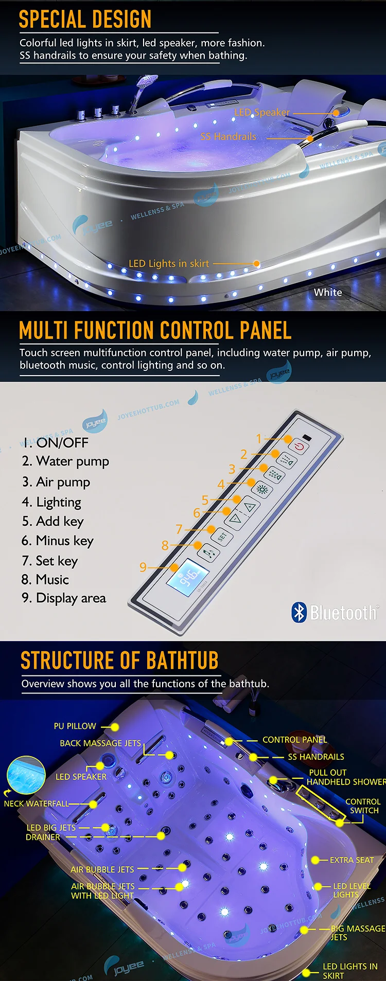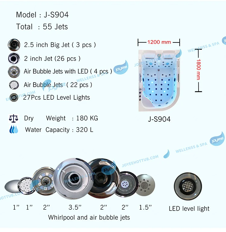 -Всего 55 струй (включая 29 массажных струй и 22 струй и 4 небольших струй с светодиодный подсветкой)