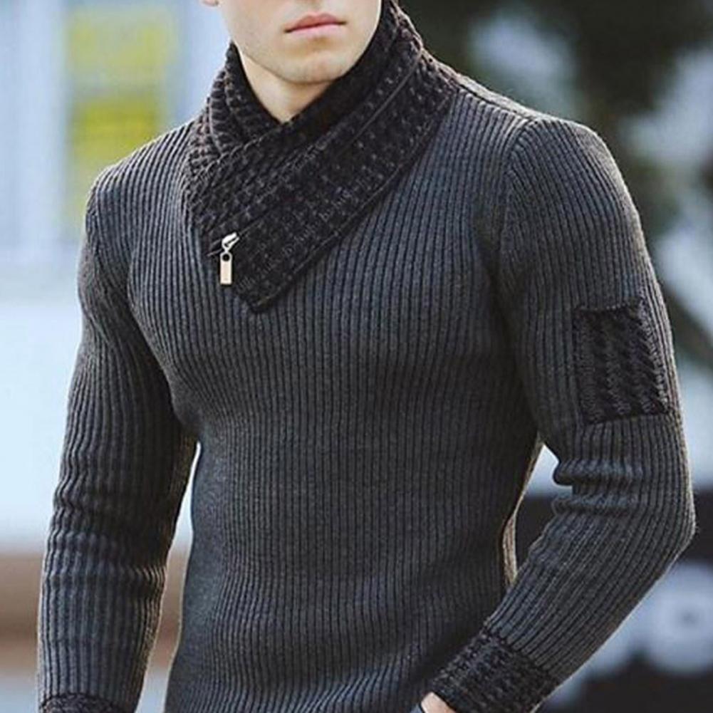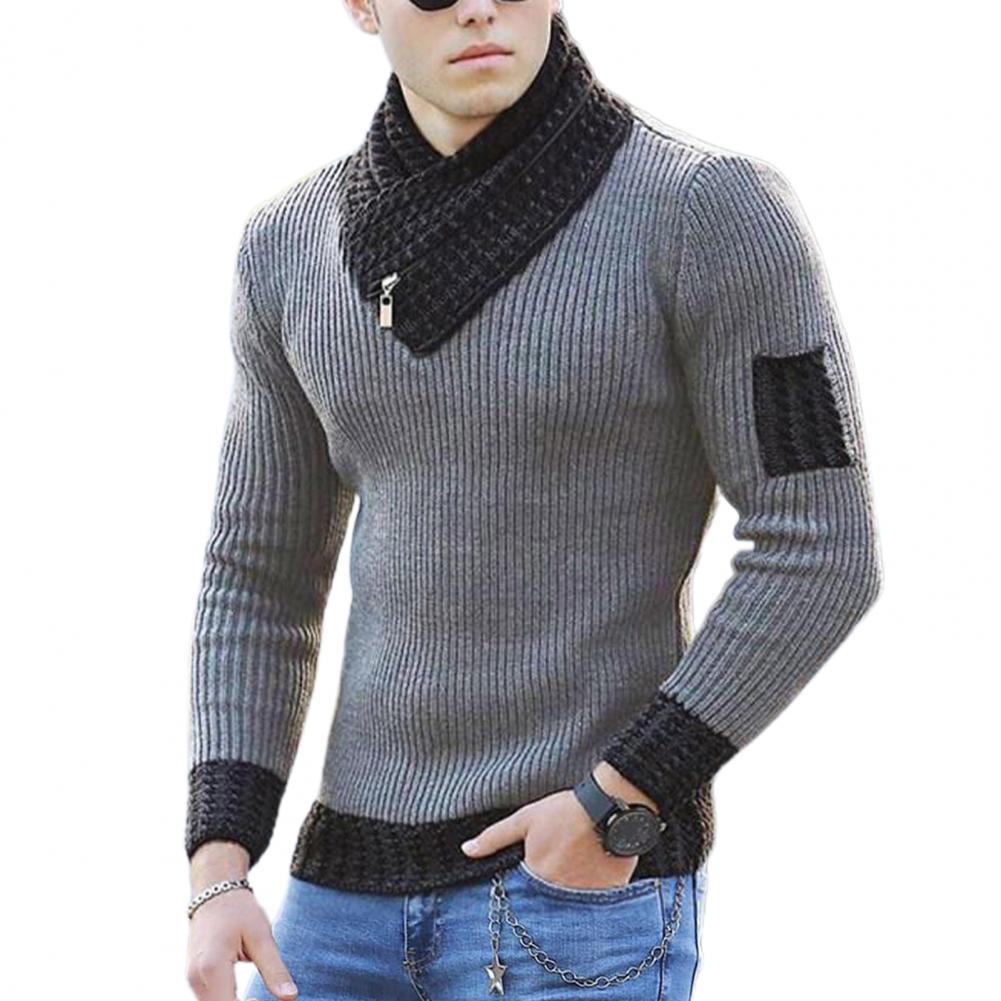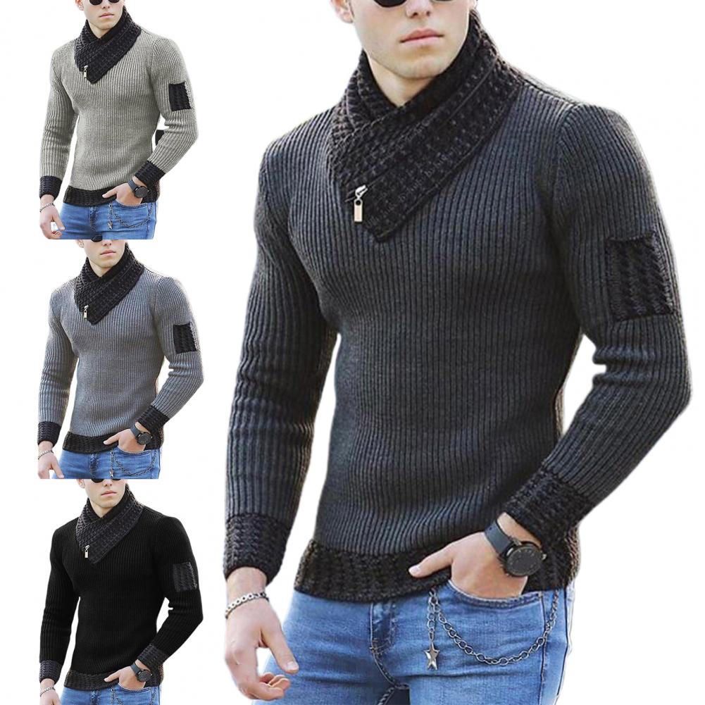 Стильный мужской свитер с длинными рукавами и воротником-шарфом; Мягкий Повседневный дышащий Удобный свитер; Уличная одежда; Сезон осень-зима