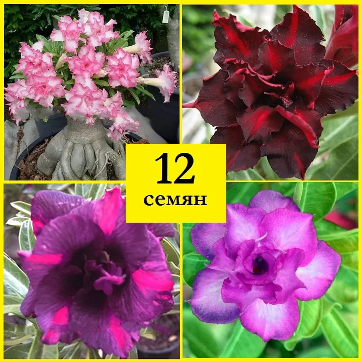 Доставка по России 8-10 днейРоза пустыни Адениум obesum Набор ФАНТАСТИЧЕСКИЙ БУКЕТ 12 семян адениума. Комнатные цветы, экзотические растения, семена. . Бонсай