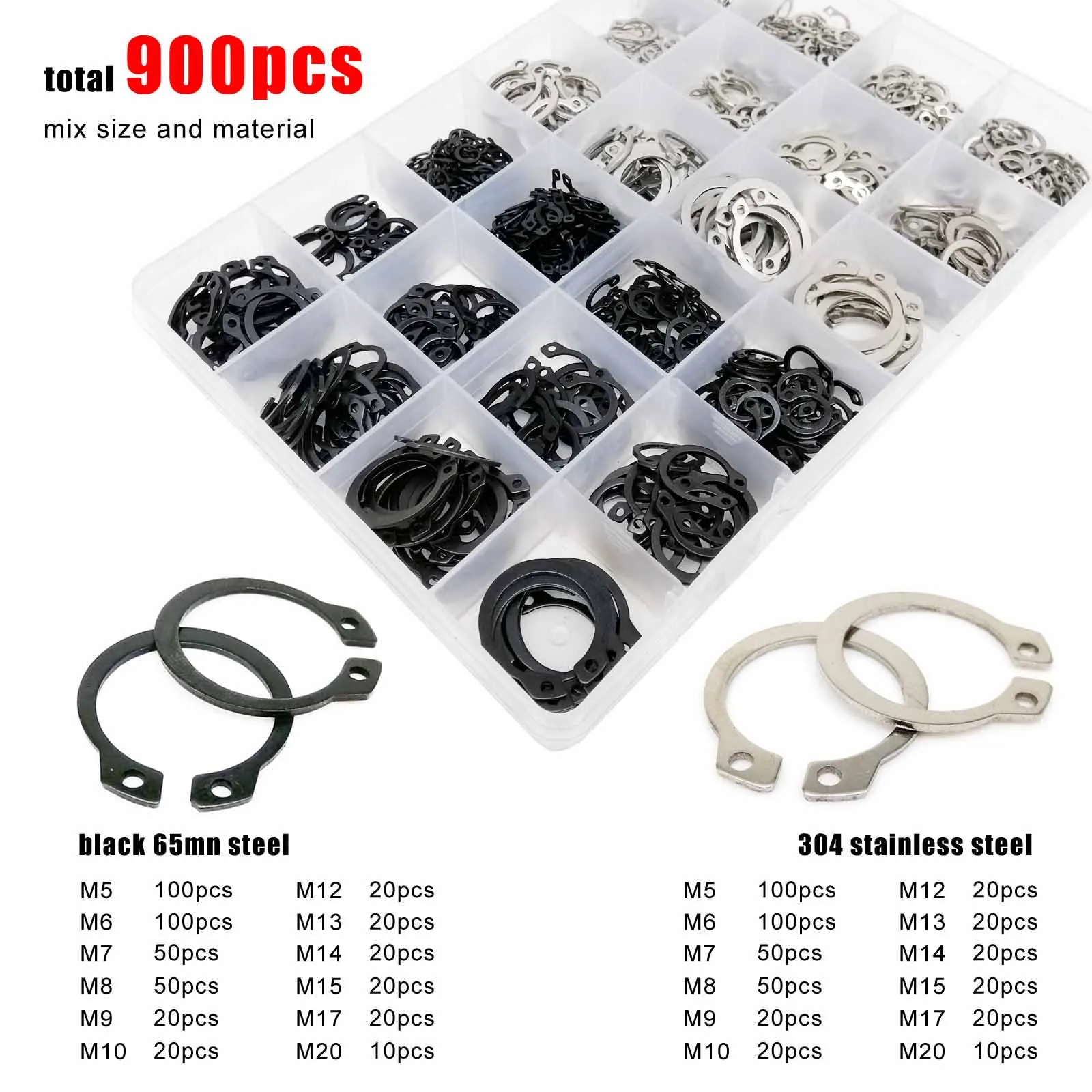 450 шт 304 нержавеющая сталь circlip + 450 шт Черный 65mn стальной circlip