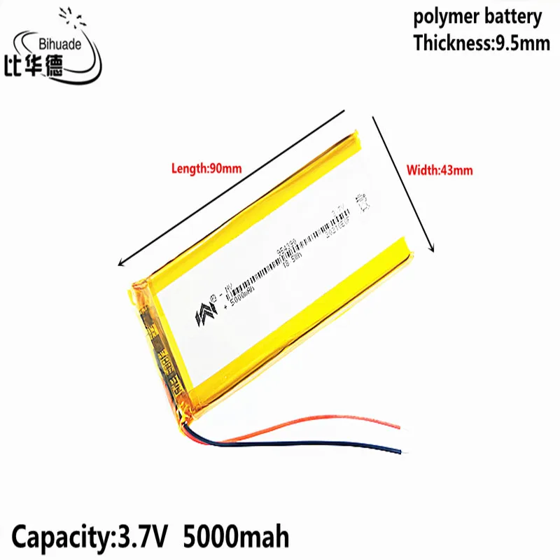 Особенности:1> 100% Новый брендЛитровая батарея2> высокое качество и большая емкость!3> встроенная схема защиты PCM для предотвращения перезарядки или чрезмерной разрядки4> Размер: 9,5 мм (В) * 43 мм (Ш) * 90 мм (Д)5> Рейтинг: 3,7 В постоянного тока, 5000 мАчМодель: 954390