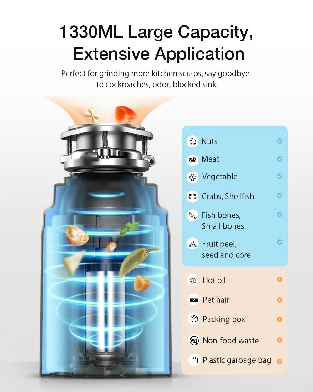 Идеально подходит для шлифования больше кухонных обрезков, попрощайтесь с тараканами, запахом, заблокированной раковиной