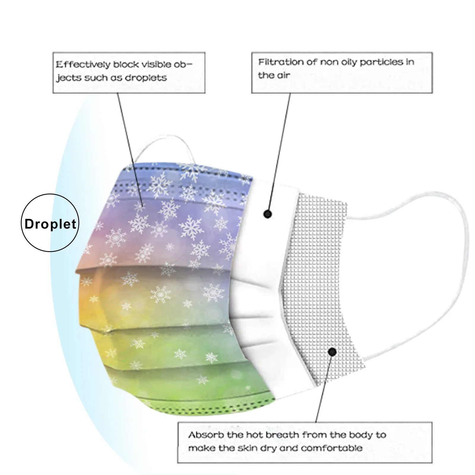 В 3 слоя Нетканая одноразовая маска изготовлена из 3 слоев нетканого материала, Безопасен и безопасен для использования. Дышащий материал и милый Узоры, которые делают его полезным и модным. Специальный 3 слоя из нетканого материала Дизайн, обеспечивает некоторую защиту от пыли, автомобильных выхлопных газов, Пыльца и т. д. эластичная Ушная петля, легко носить и не давит на уши. Маникюрный салон или любые другие области, где может потребоваться защита