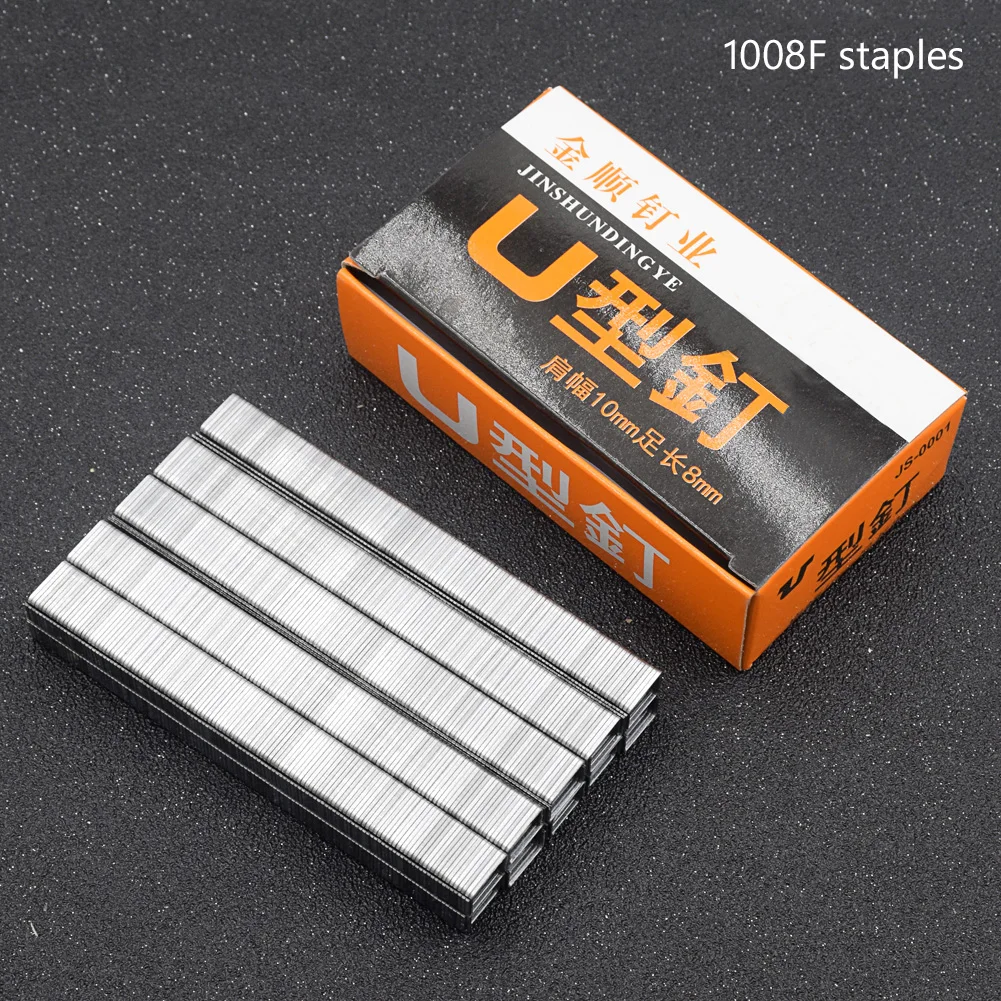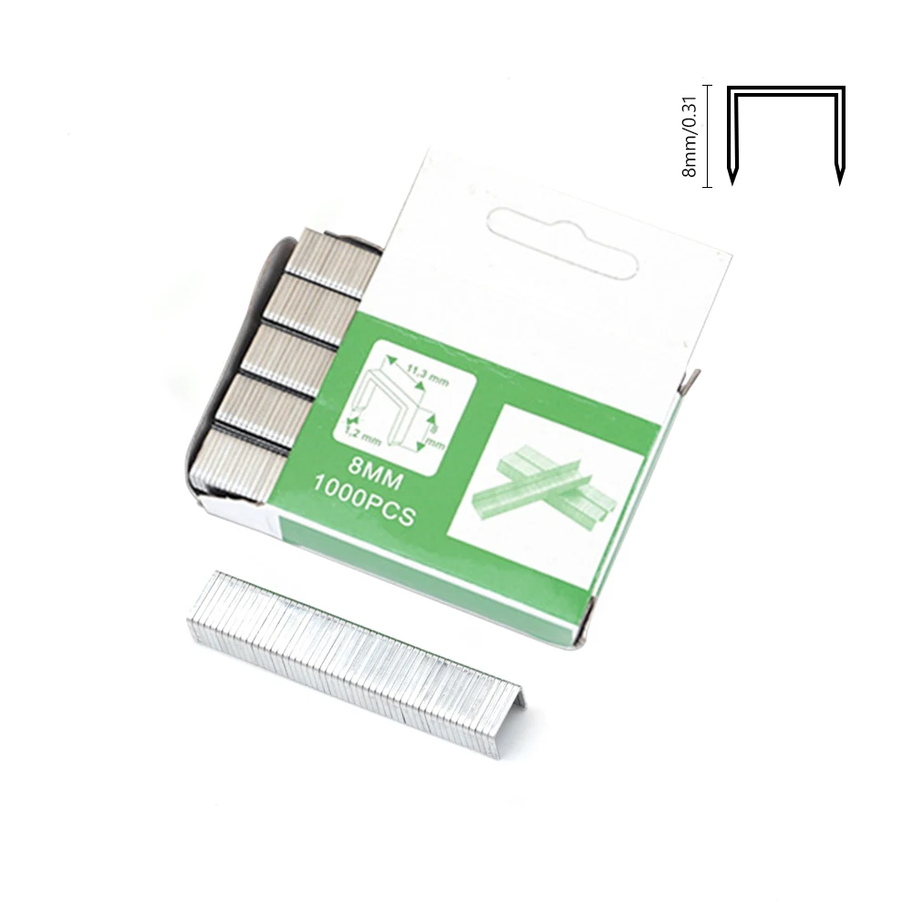 Подходит для большинства стандартных степлеров, снастей для гвоздиков, универсальные скобы предназначены для работы с большинством стандартных степлеров, что упрощает процесс поставки и позволяет легко заправлять.