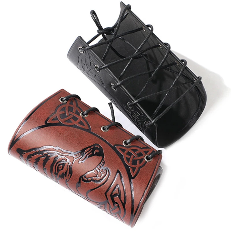 1 шт., Викинг один символ Рун, Северный компас, голова волка, кожаный браслет, панк браслет наручная повязка наручник, браслет для мужчин