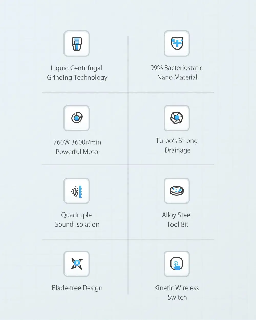 ● Конструкция без лезвия, технология центробежного шлифования жидкости