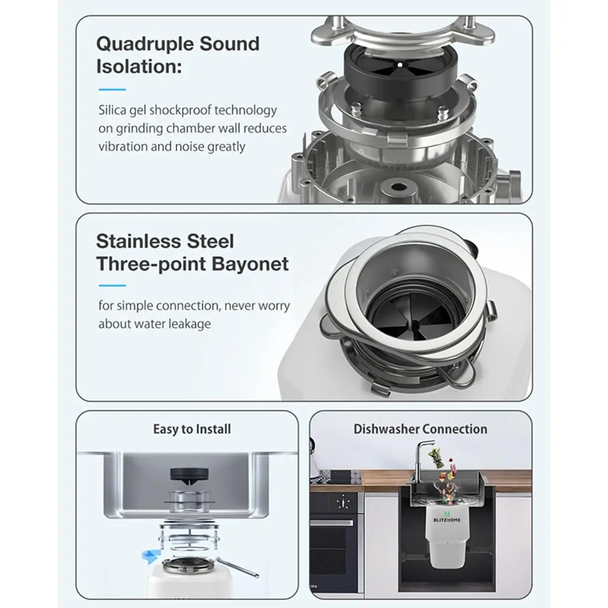 Blitzhome BH-WD3 760 Вт 1300 мл кухонная мусорная дробилка для утилизации пищевых отходов, измельчитель кухонной раковины