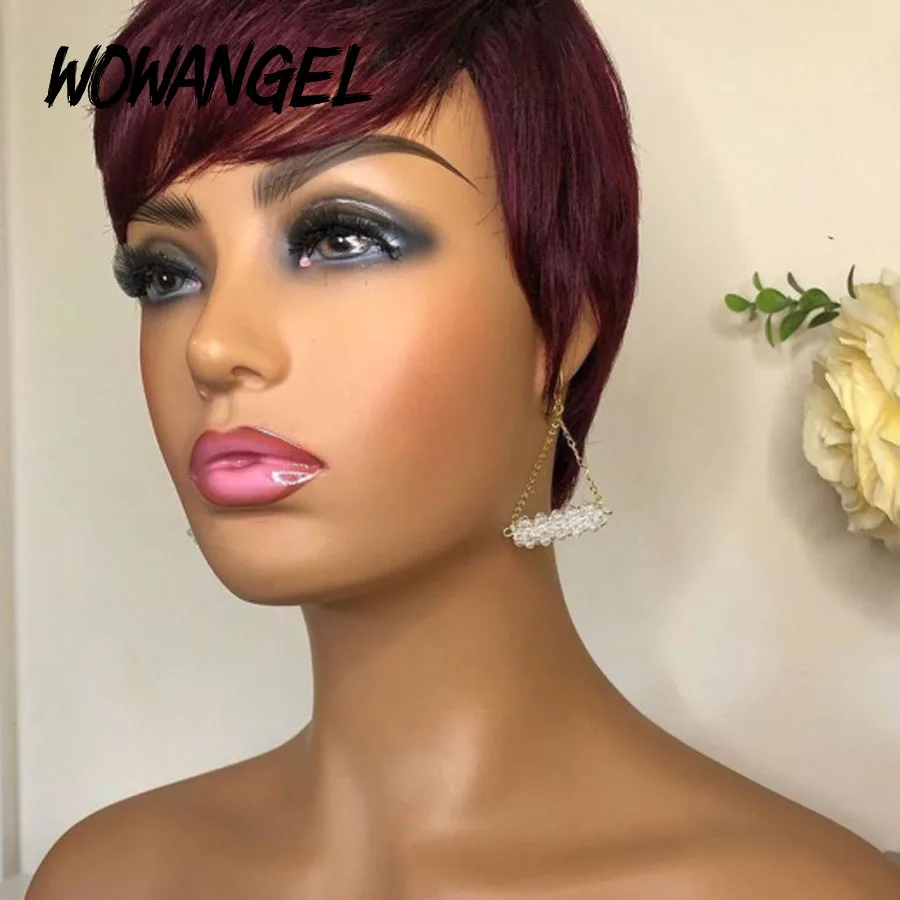 Короткие парики из человеческих волос бордовые 99J Pixie Cut прямые бразильские волосы для черных женщин машина сделала яркий цвет дешевые Glueless
