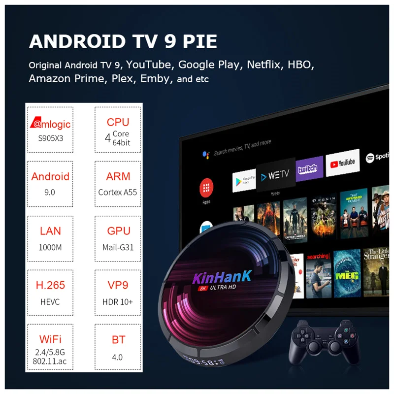 Amlogic S905X3 чип с оперативной памятью 4 ГБ Оперативная память + 32 ГБ Встроенная память, 2,4G + 5G двухдиапазонный WI-FI