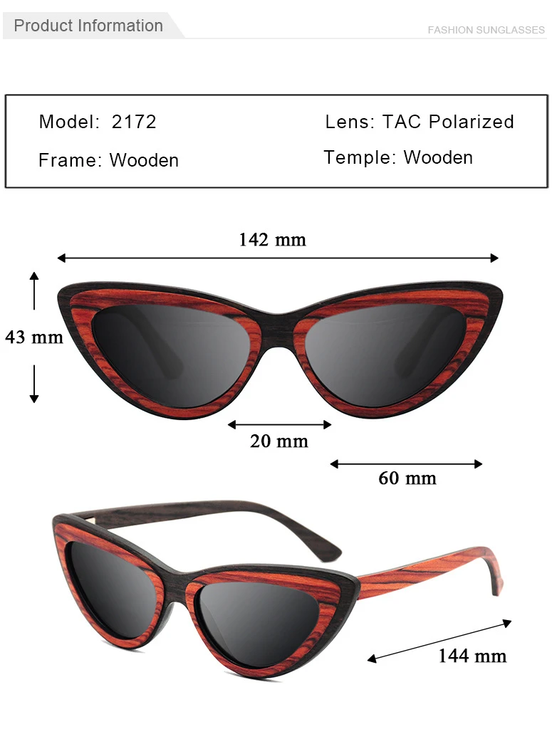 Эти солнцезащитные очки-стильная, Маленькая женская оправа кошачий глаз. Использование 2 скрепленных леса. Буровая древесина и черное дерево, чтобы произвести чрезвычайно индивидуальный и яркий вид