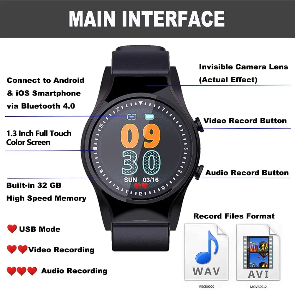 🎁One Hidden Button Recording The Set: Independent design with hidden buttons for real 1080P video recording and high-quality noise-reducing voice recording, patented hidden camera hole design, you can't find the camera hole from outside. In an emergency, you can complete the recording and save it with just one push of a button.