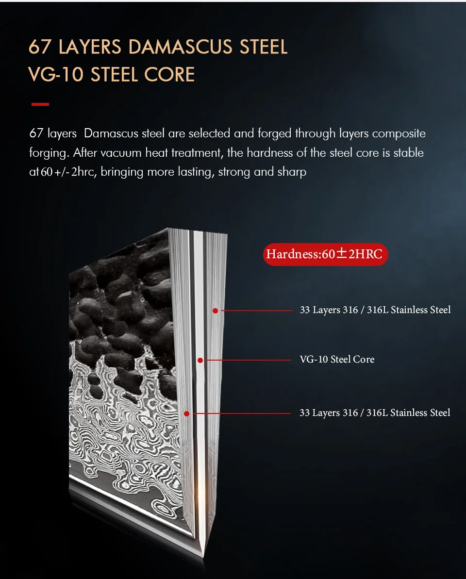 Our forging skills are divided into traditional manual forging and modern machine forging. The steel covered includes Japanese Takesei Steel VG-10, Damascus steel, German molybdenum vanadium steel, stainless steel, high manganese steel, etc.