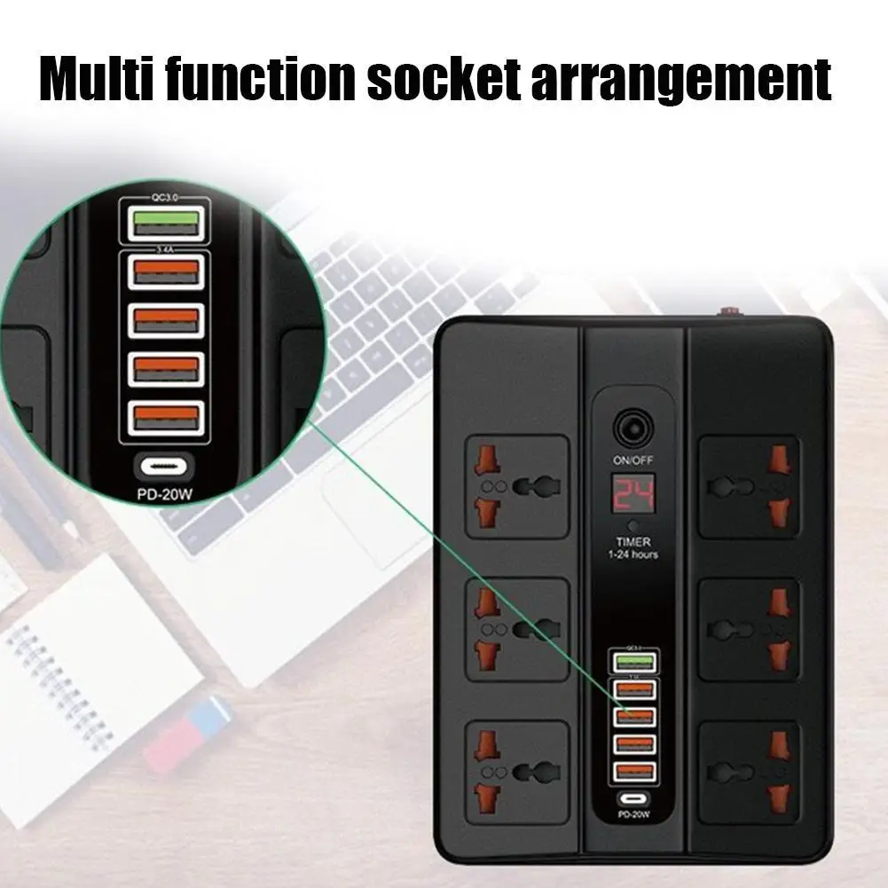 Тип: 3000 Вт 6 розеток + 6 зарядных устройств USB