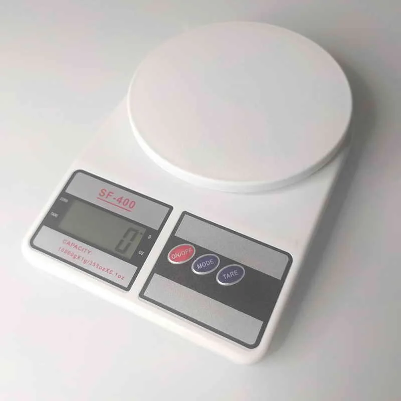 Кухонные весы SF-400. Устройство прекрасно подходит для определения веса ягод, фруктов, овощей, конфет, мяса, а также сахара, муки, гречки, риса и прочих сыпучих продуктов. Функции весов: индикатор садящейся батареи, авто выключение, авто калибрация, выбор отображения информации на экране (граммы или унции), тарирование (это стандартная операция, позволяющая получить вес без учета тары), автоматическое обнуление (после взвешивания не нужно включать/выключать весы, чтобы сбросить на 0).