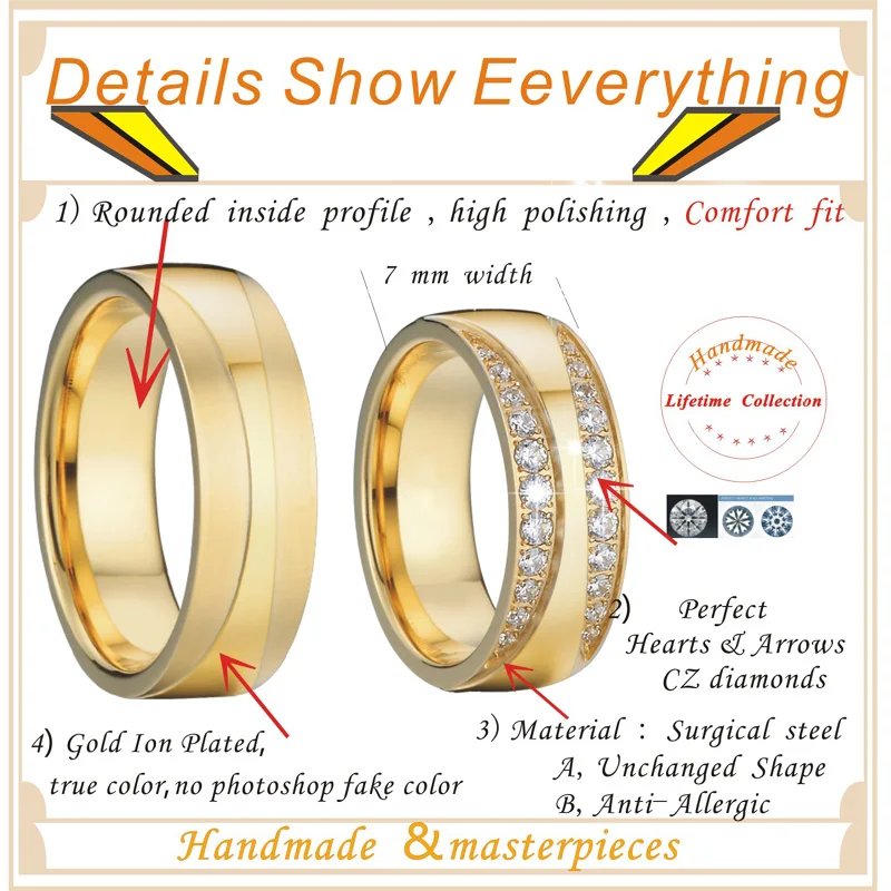 Цена за 2 кольца: сначала выберите мужской размер кольца, затем вы можете выбрать размер кольца для женщин.