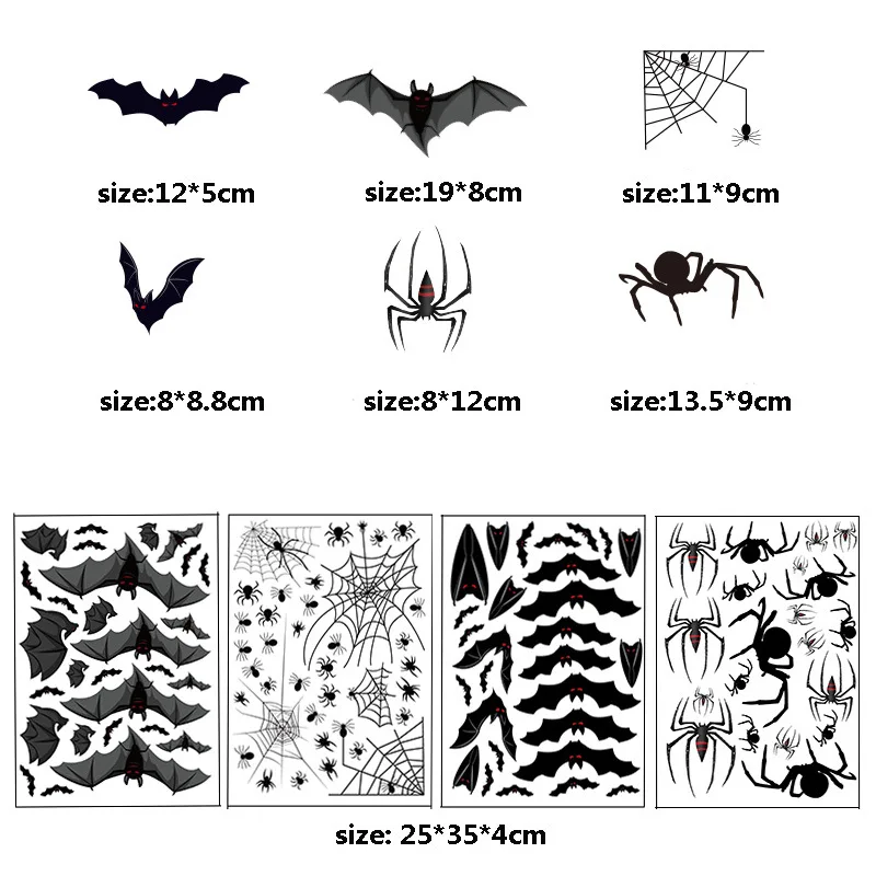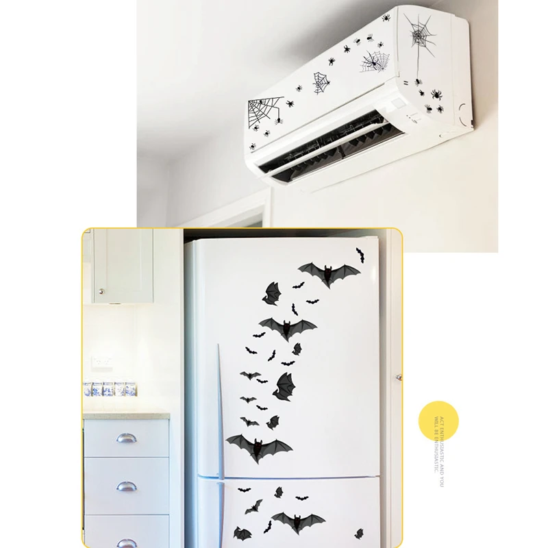 Zeroilfe Хэллоуин наклейки в форме Паука Съемная наклейка с летучей мышью стикер на стену для окна задний фон домашняя тема вечерние украшения