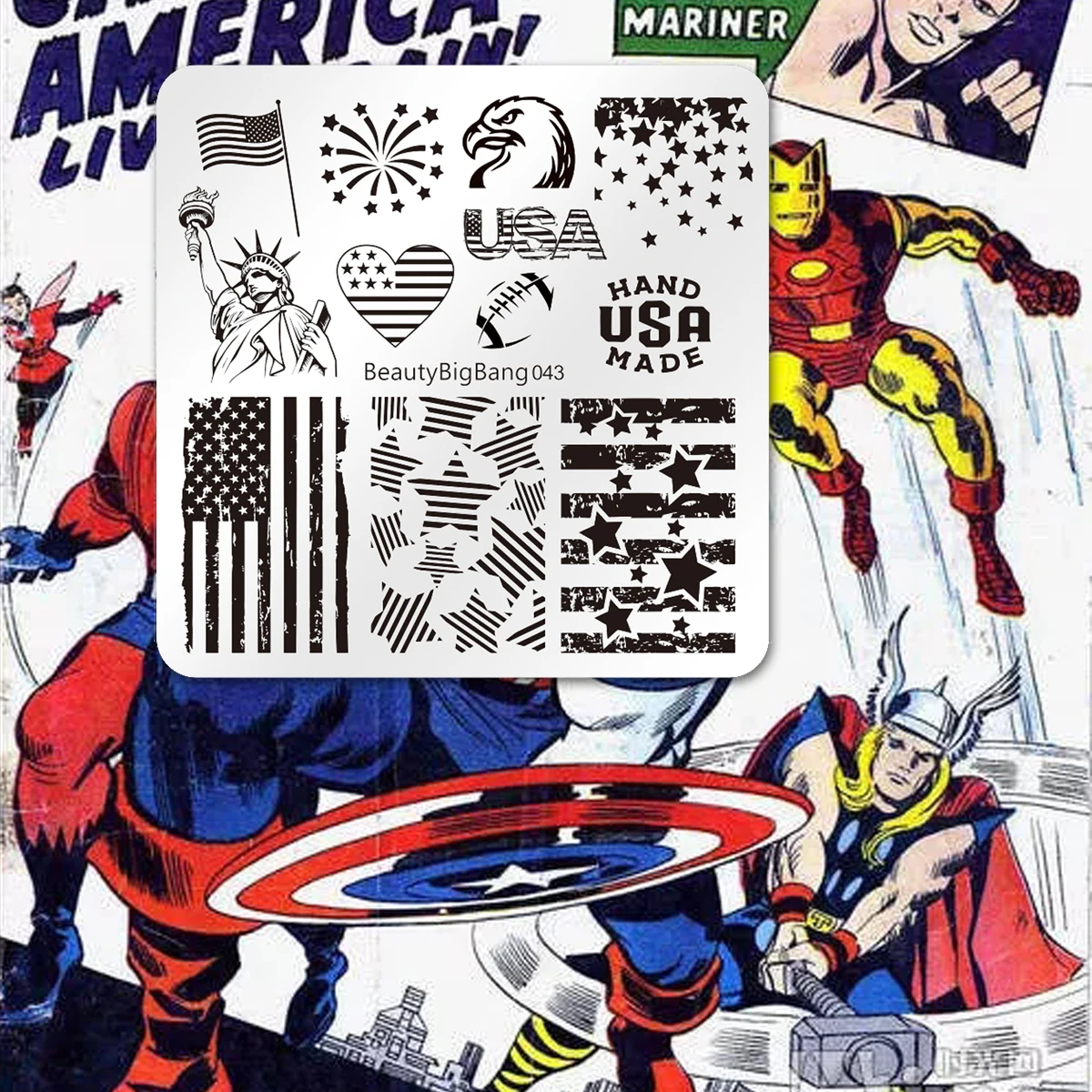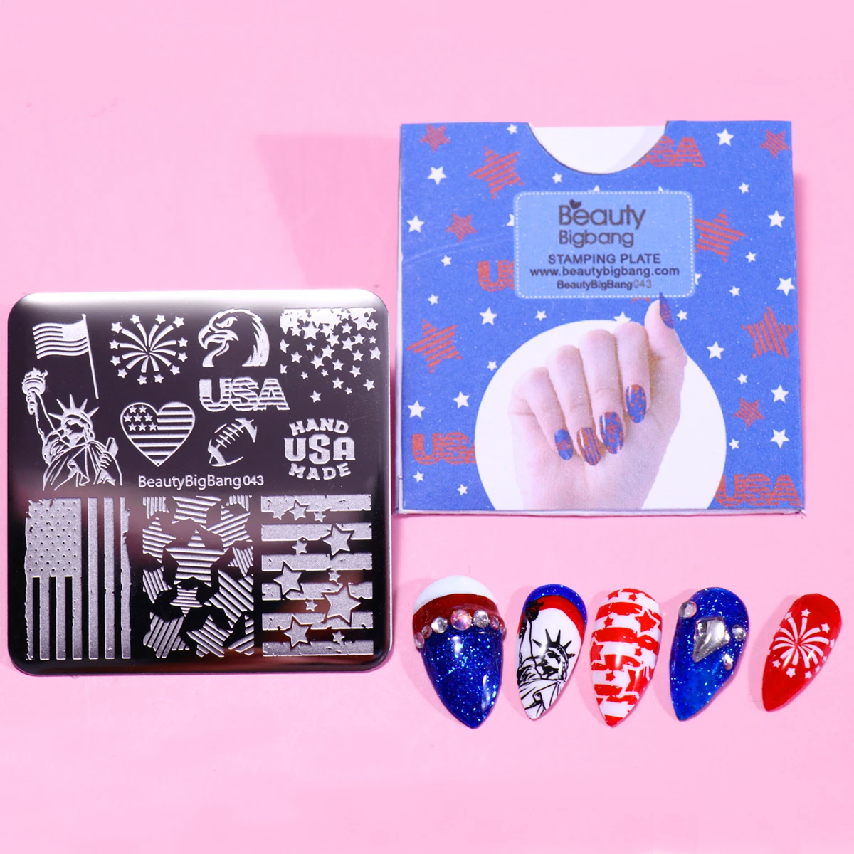 Штампованные пластины BeautyBigBang, изображение звезд США, американский флаг, стиль свободы, Орел, нержавеющая сталь, шаблон штампа для дизайна ногтей 043
