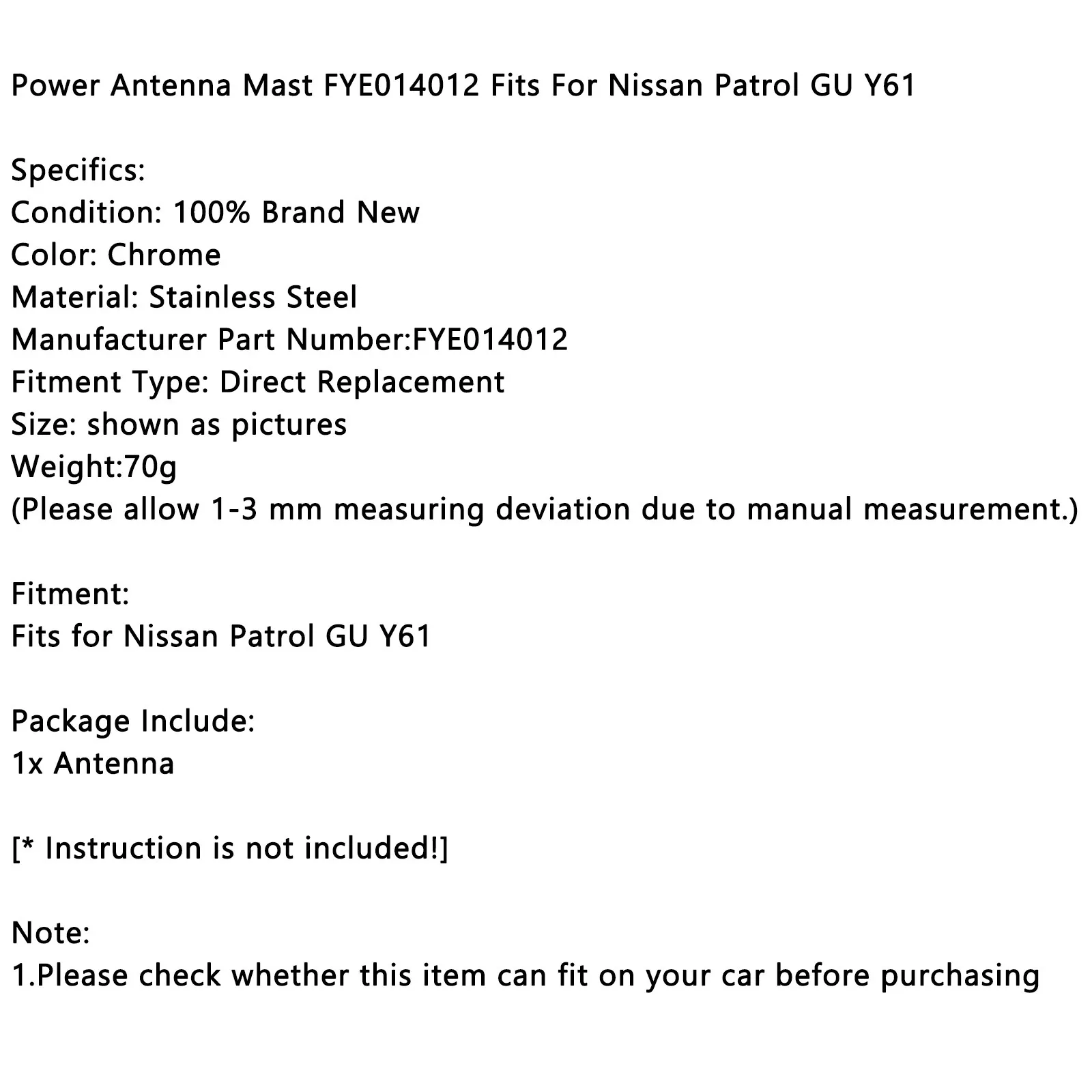 Мачта силовой антенны FYE014012 Подходит для Nissan Patrol GU Y61