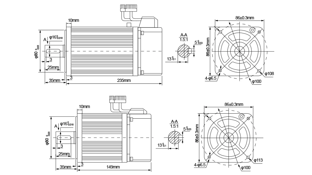 1 x 750w 220v 80ST-M02430 / 90ST-M02430 AC servo motor(choose brake or no brake)