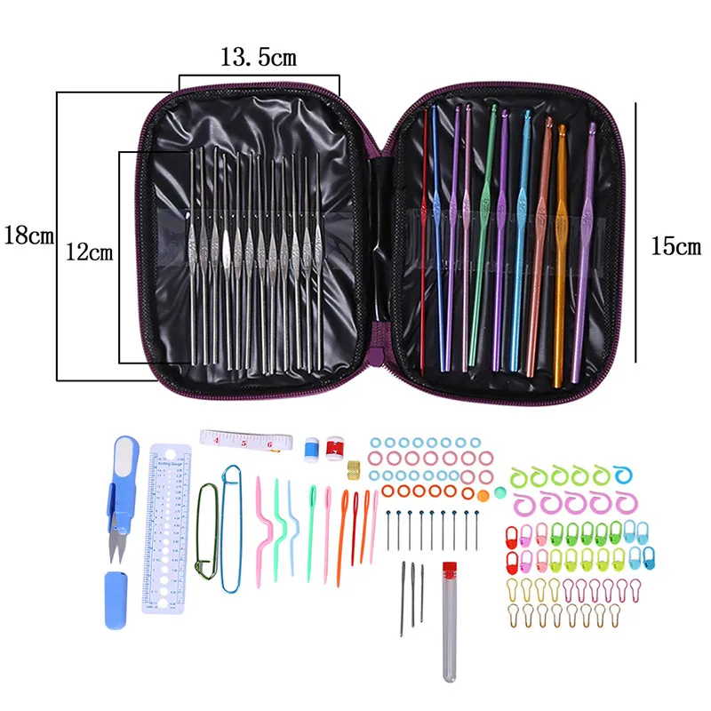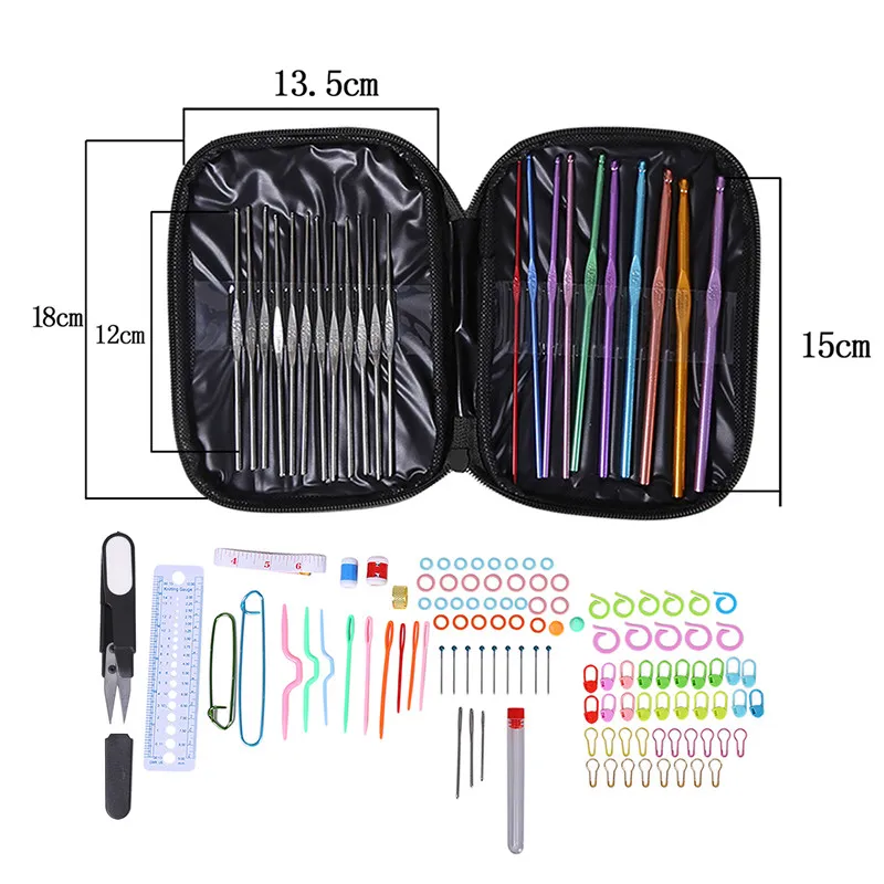 Размеры: сумка для хранения Длина * Ширина: 18*13,5 см, красочные крючком Длина: 15 см, железо вязальные Длина: на высоком каблуке 12 см, погрешность около 1 см