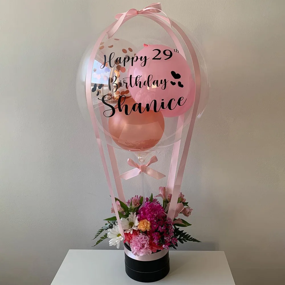 Вы можете добавить шоколадные конфеты, бутылку вина, клубнику, покрытую шоколадом, или заказать подарки по вашему выбору и персонализированное сообщение на воздушном шаре за дополнительную плату.