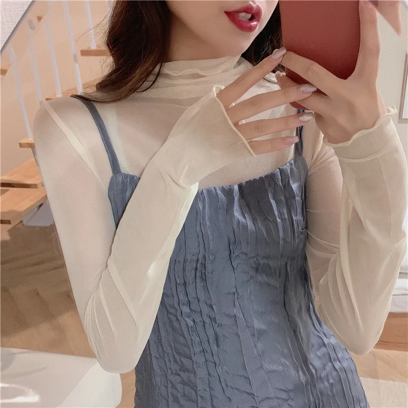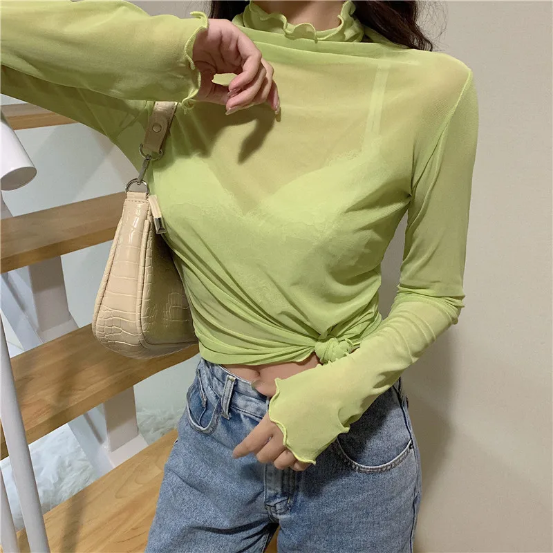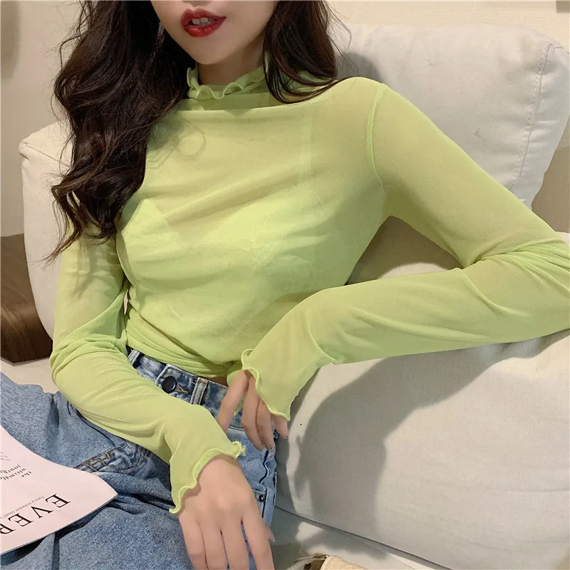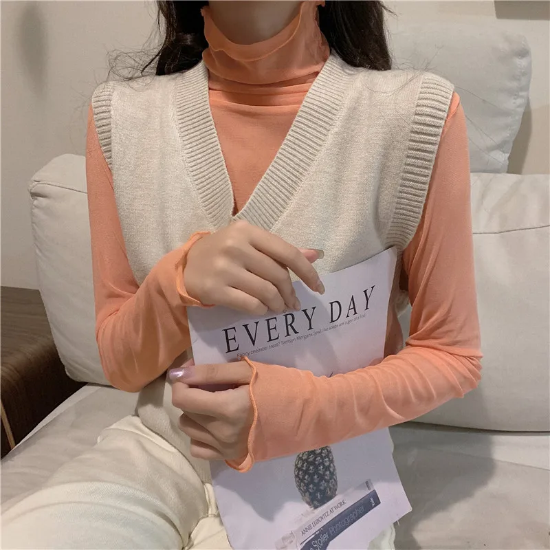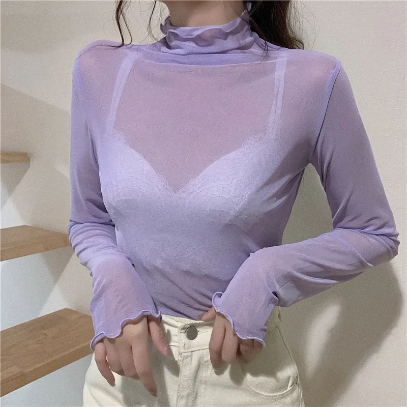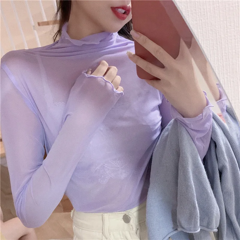 Женский топ с высоким воротом TingYiLi, черная, белая, розовая, фиолетовая Водолазка с длинным рукавом в Корейском стиле