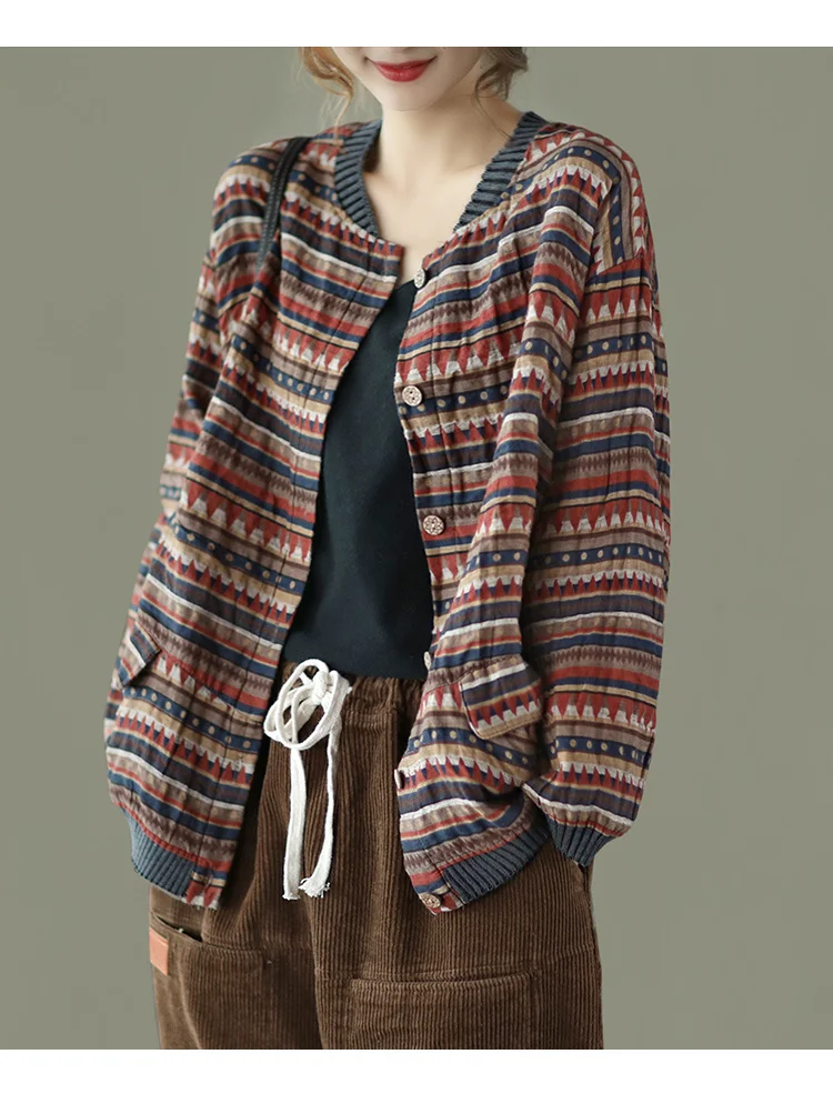 Полосатые куртки в японском стиле; Льняные пальто с принтом