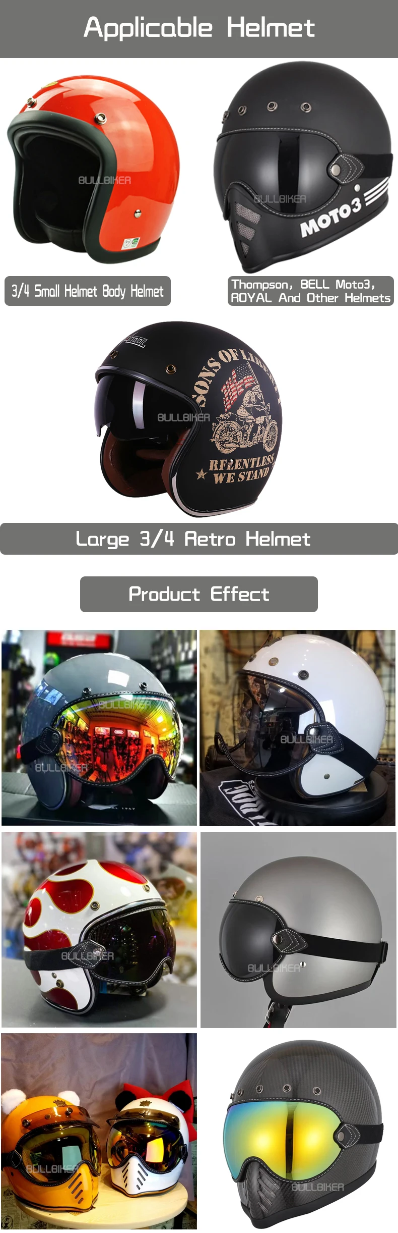 Применимый шлем: для Томпсона MOTO3, BELL MOTO3, ROYAL,SHOEI,P-ZERO и других шлемов в стиле ретро