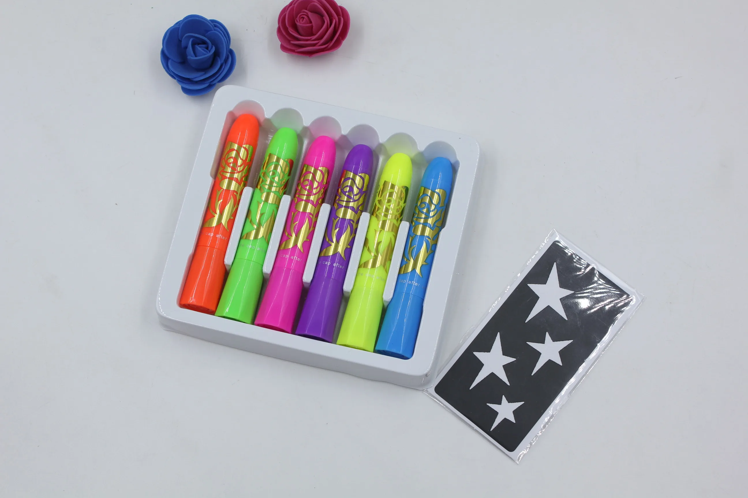 Хэллоуин светится в темноте лицо черный светильник краска УФ неоновая краска для лица и тела набор помад карандашей флуоресцентная