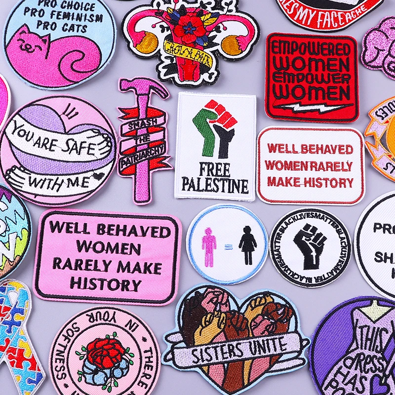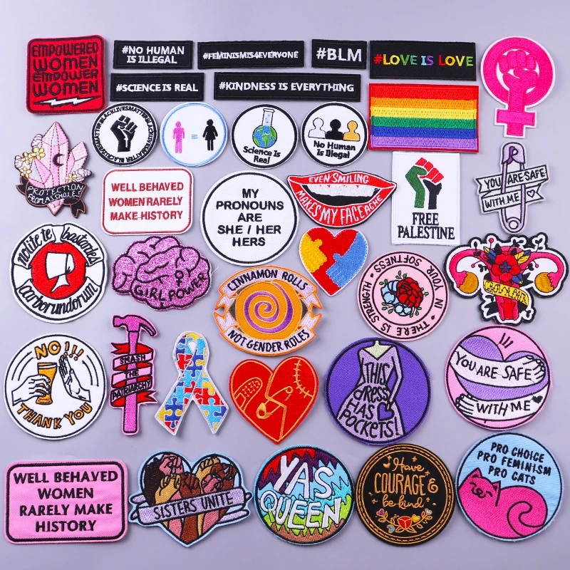 Hippie Letter Patches Iron On Patches On Clothes Cartoon Heart Embroideried Patches For Clothing Stickers DIY Feminist Applique