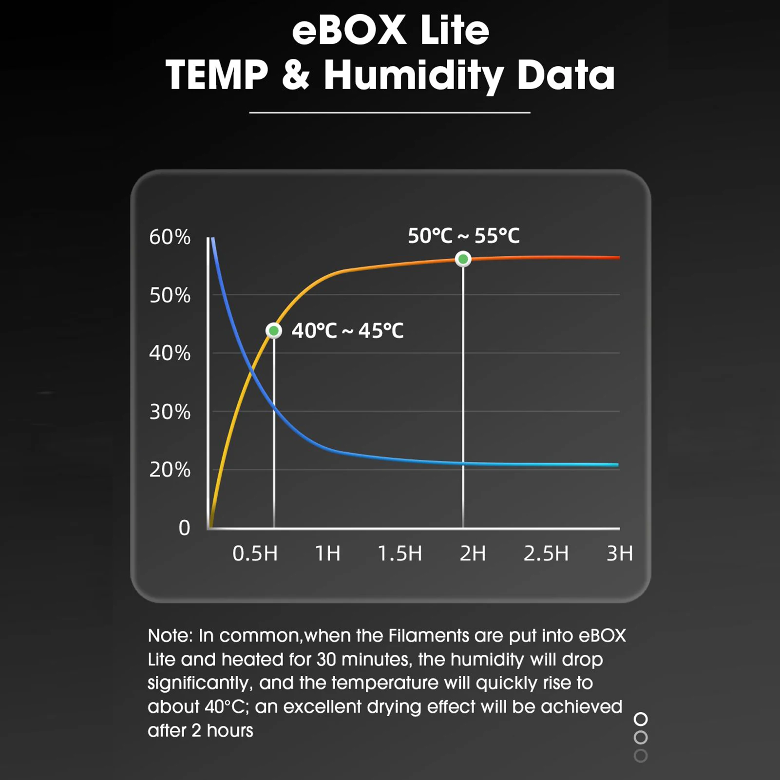 【Нагревание и сушка и нижний Noise】:Больше не беспокойтесь о том, что нити становятся влажными, eBOX Lite может нагреваться гораздо более равномерно и легче поддерживать постоянную температуру и влажность в коробке. EBOX Lite фокусируется на скорости, что делает печать быстрее.