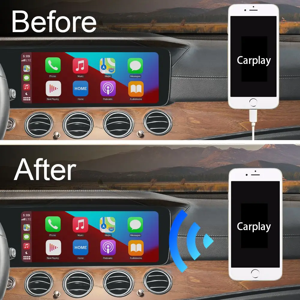 С установленным адаптером, как только автомобиль запустится, ваш телефон автоматически подключится к вашей системе получения информации. Вы можете держать телефон в кармане, с беспроводным адаптером CarPlay, вам больше никогда не нужно беспокоиться о грязных кабелях, нет необходимости заменять весь головной блок, экономит ваше время и бюджет.