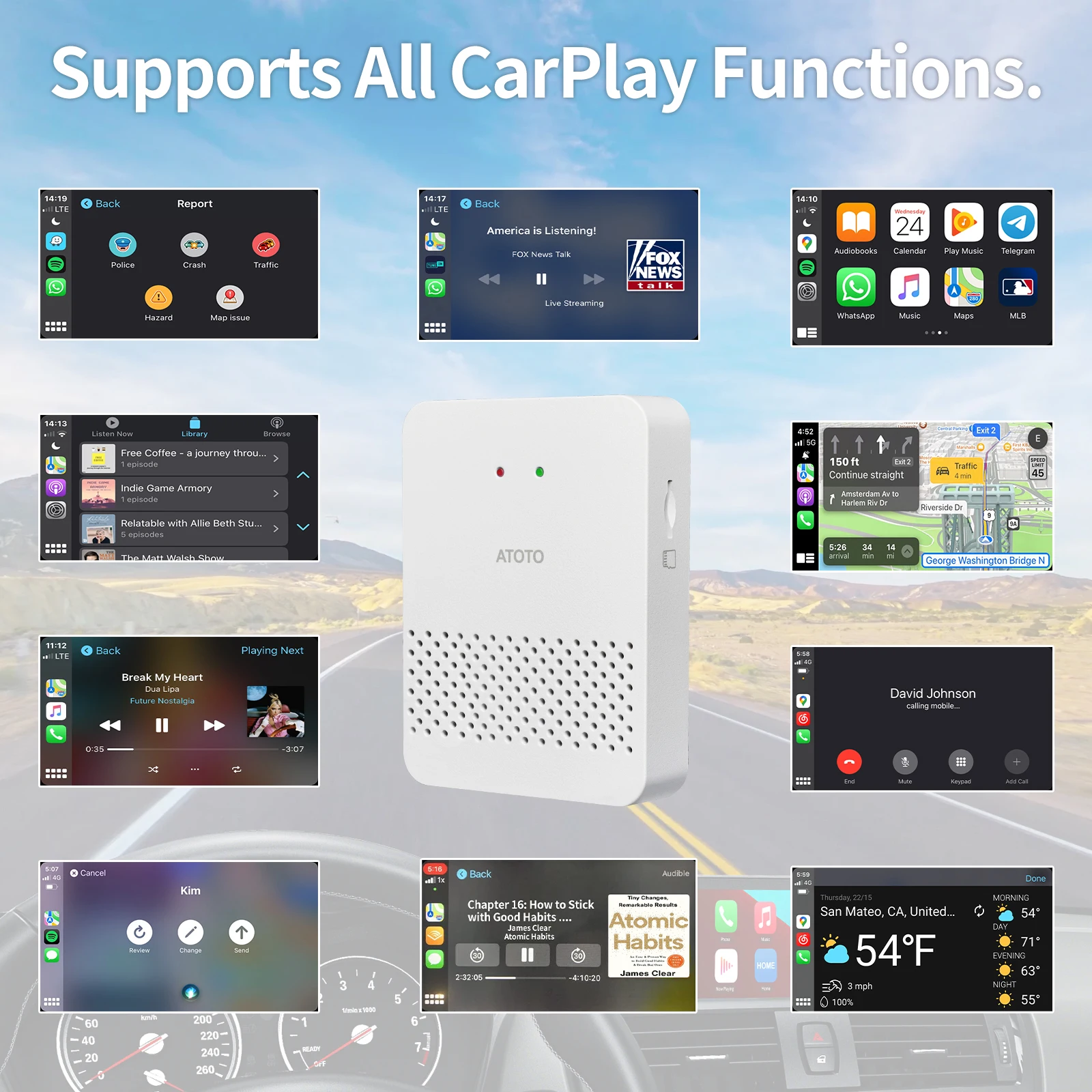 ATOTO беспроводной адаптер CarPlay, преобразует проводное головное устройство CarPlay в беспроводное соединение, совместимо с заводскими автомобилями Apple Carplay Audi/Porsche/Volvo/Volkswagen и т. д.