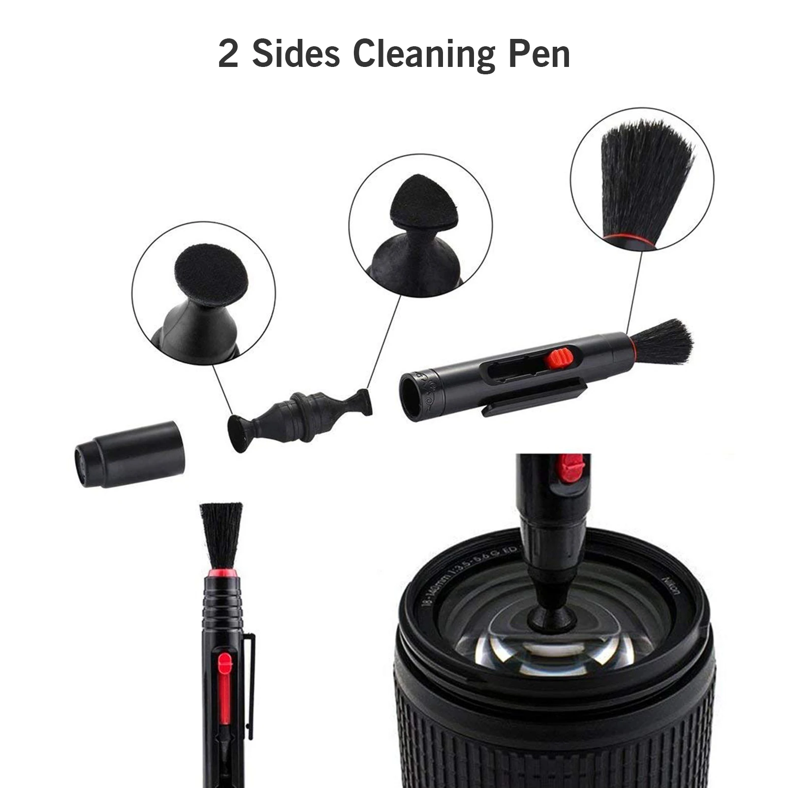 Воздуходувка может легко направлять поток воздуха, чтобы выдуть грязь и пыль из ваших линз, а двухсторонняя ручка для очистки линз дает вам многофункциональную очистку.