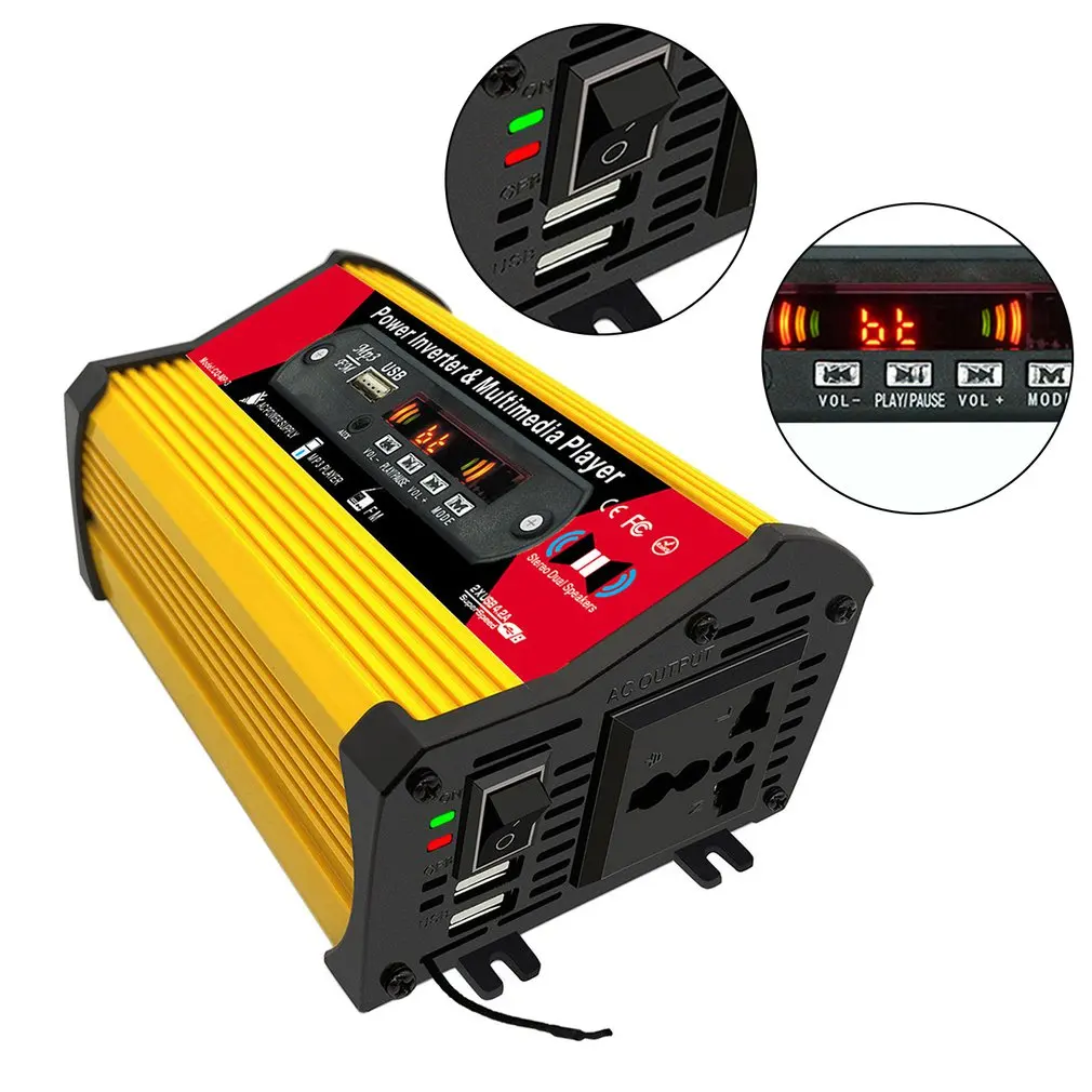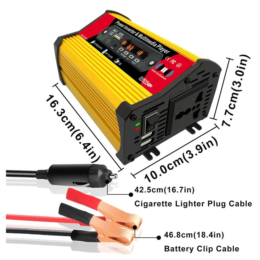 5. Инвертор: автомобильный инвертор с 2 usb-портами и розеткой переменного тока. Перенапряжение: 600 Вт, UPS поставляется с 2 зажигалками и держателями батарей, Обеспечивая непрерывную выходную мощность 300 Вт, 6 00 Вт максимальной мощности (убедитесь, что общая номинальная мощность подключенного оборудования меньше или равна 300 Вт).