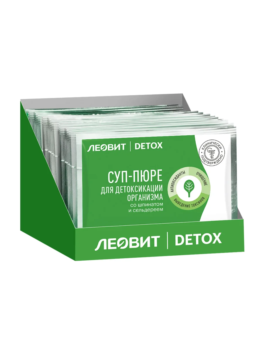 Суп-пюре со шпинатом и сельдереем специализированный пищевой продукт диетического профилактического питания для детоксикации организма. Содержит шпинат и сельдерей, компоненты которых обеспечивают процессы обезвреживания токсинов и их выведения из организма.