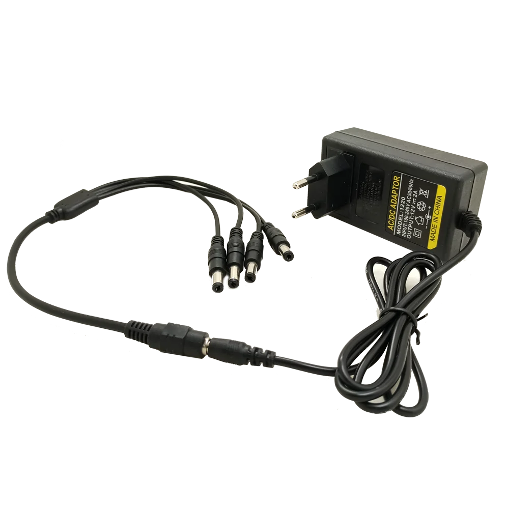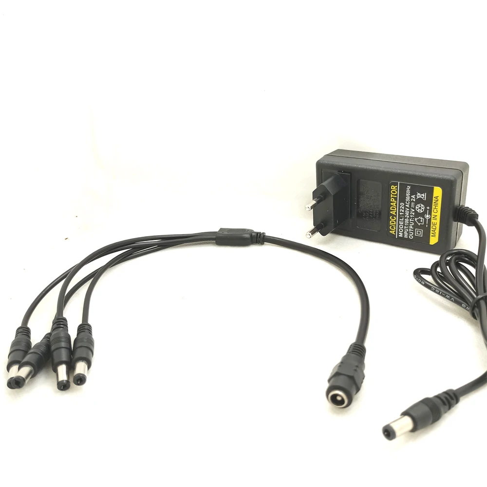 DC 12V 2A Power Supply Adapter + 4 Split Power Cable for CCTV Security Camera DVR Analog AHD TVI CVI IP Camera DVR Systems