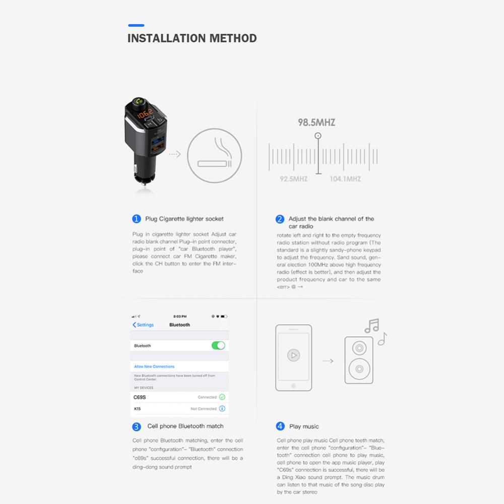 Название продукта: автомобильное зарядное устройство Bluetooth