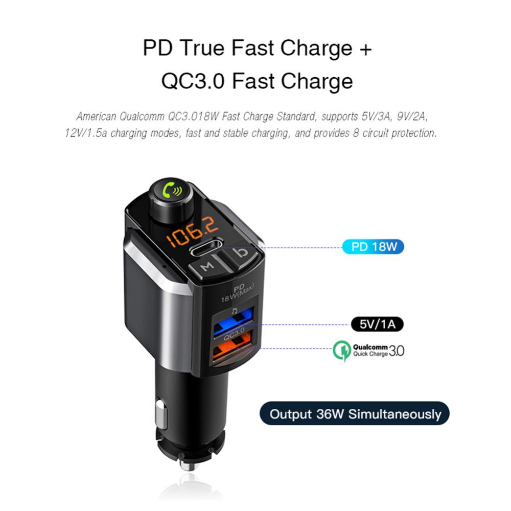 Автомобильный Bluetooth громкой связи fm-передатчик MP3-плеер Телефон PD быстрое зарядное устройство bluetooth приемник
