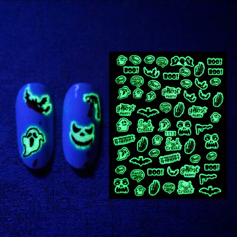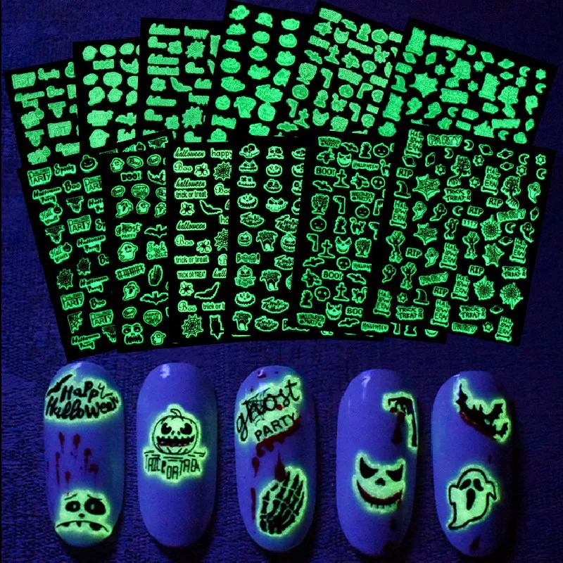 3D светящийся Хэллоуин арт, наклейки для ногтей призрак ведьма Тыква письмо Летучая мышь паук дизайн украшения наклейки аксессуары для маникюра
