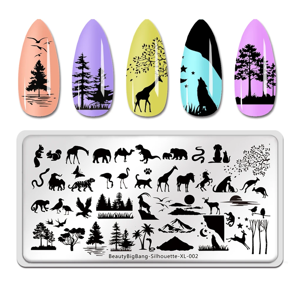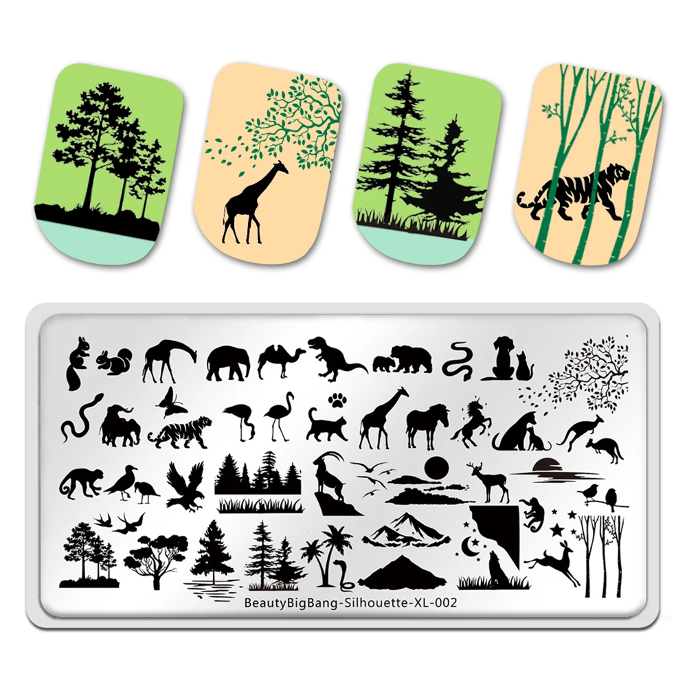 Beautybigbang штампованные пластины для ногтей силуэт XL-002 изображение животного дерева Змеиный динозавр 6*12 см шаблон штампа для дизайна ногтей