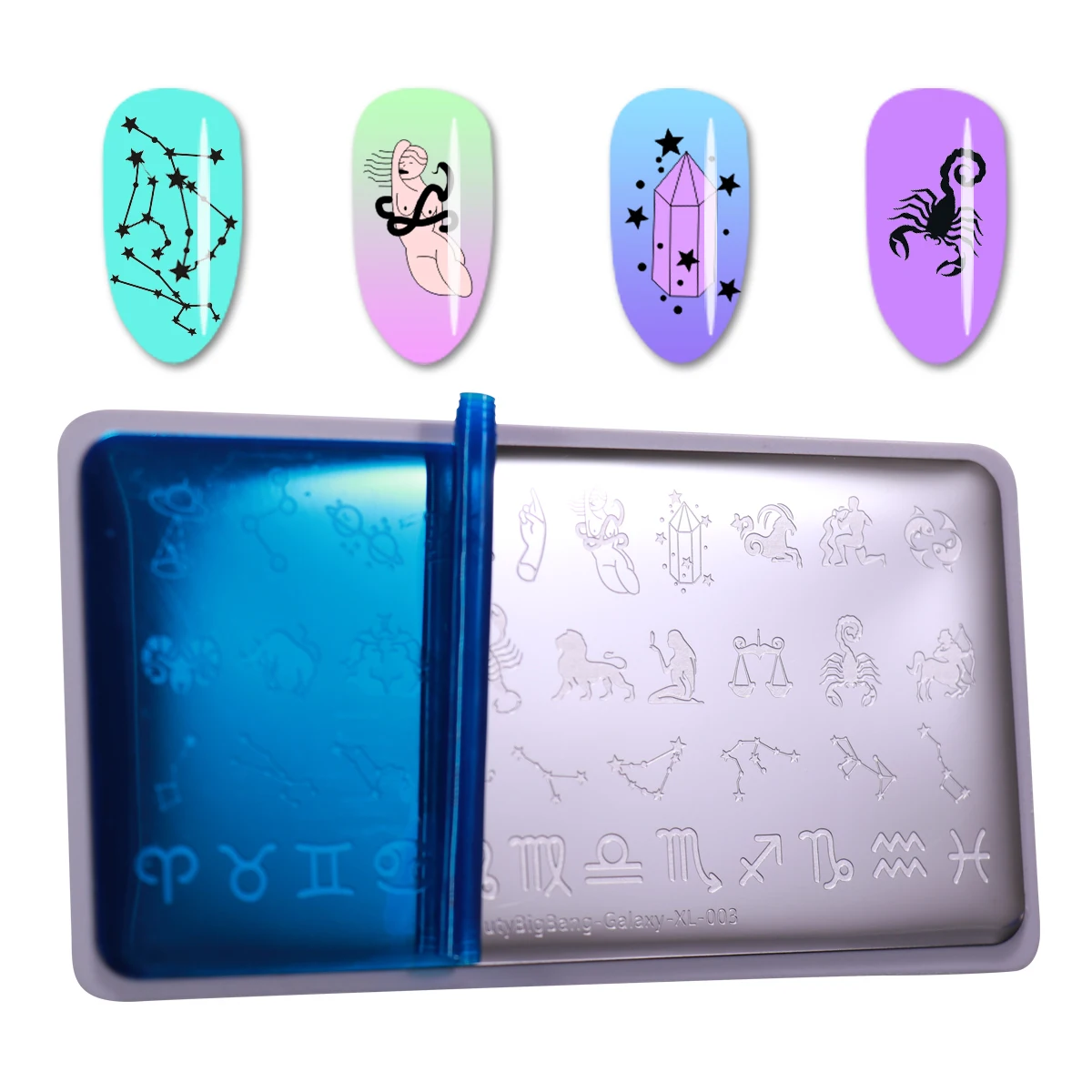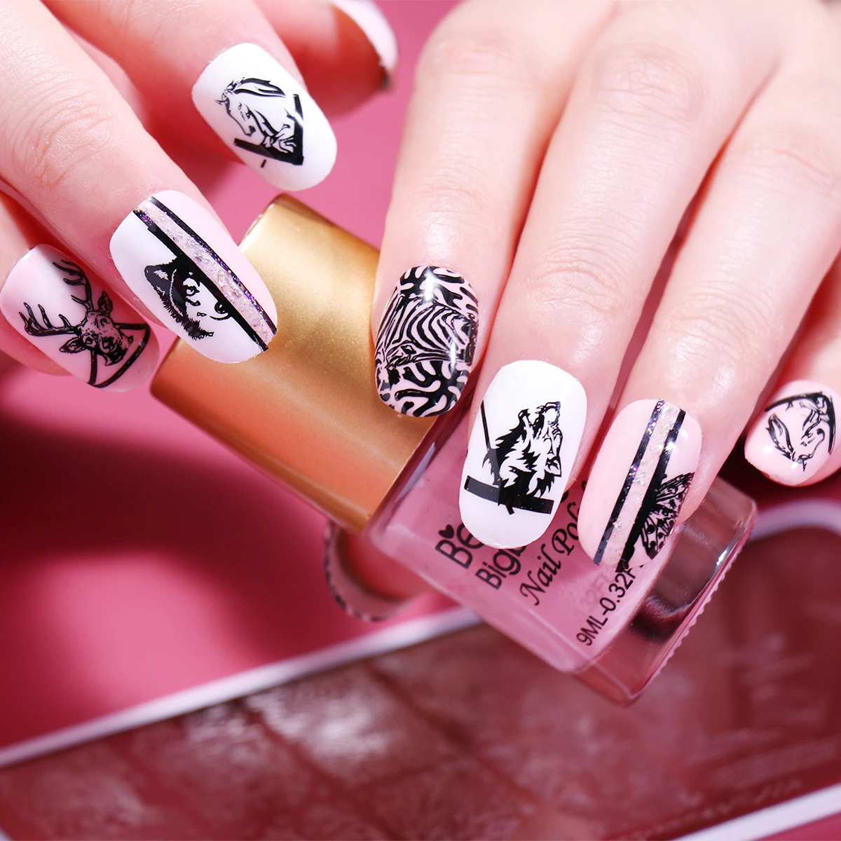 Характеристики: 1. Нанесите базовое пальто или обычный лак на гвоздике. 2. Нанесите лак для ногтей на желаемое изображение в пластине. (Рекомендуется: Используйте однотонный лак для ногтей, чтобы текстура была толще, чем другие лаки для ногтей) 3. Сделайте скребок наклонившись на 45 градусов и быстро и сильно отполируйте чрезмерный лак изнутри. 4. Немедленно нажмите на стемпер с нежным подвижным движением, чтобы подобрать дизайн. Изображение переносится на stamp.5. Нанесите изображение на ноготь с нежным подвижным движением. Изображение переносится на ваш адрес. 6. Повторите вышеуказанные шаги для всех ваших ногтей.